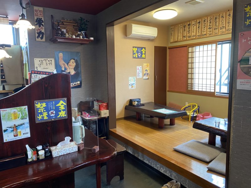 奥には座敷が2テーブルあります。感染対策の為、座席数を減らして営業されていますので、お昼の時間を少しずらすと待たずに入る事ができそうです。