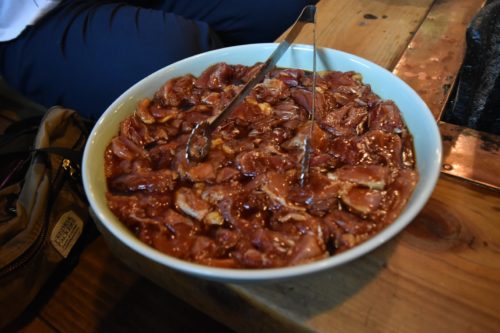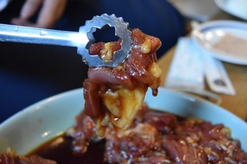 食べては焼いて、ひたすら無言で食べ続け。一口サイズに切っても、甘辛いタレと弾力があるお肉が口の中を支配します。味の感想を言い合いたかったのですが、諦めました。