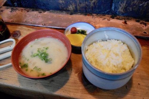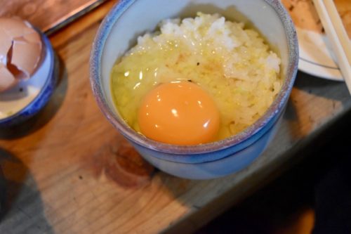 特製のにんにく醤油と混ぜた卵かけご飯も