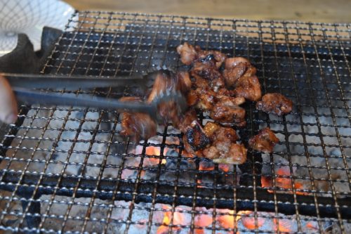 地鶏を囲炉裏で焼いていきます