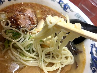 麺は熊本ラーメンらしい中太ストレート麺で、やや硬めの食感ですすりやすい麺です。