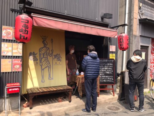 子飼商店街の中にあり、多くの常連客で賑わう「らぁめん臨機」。