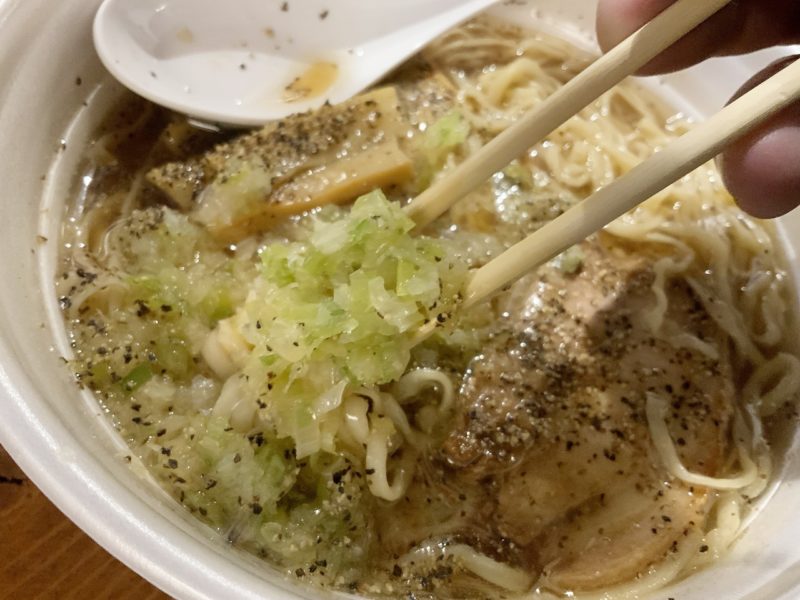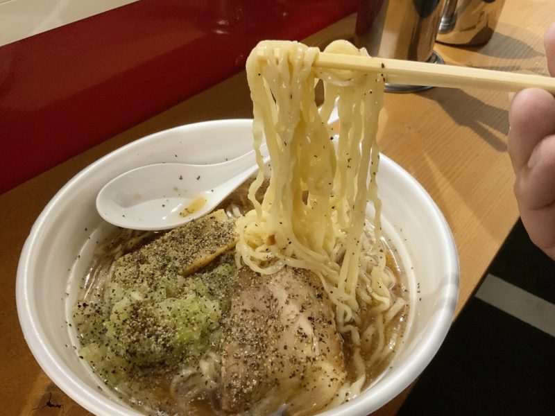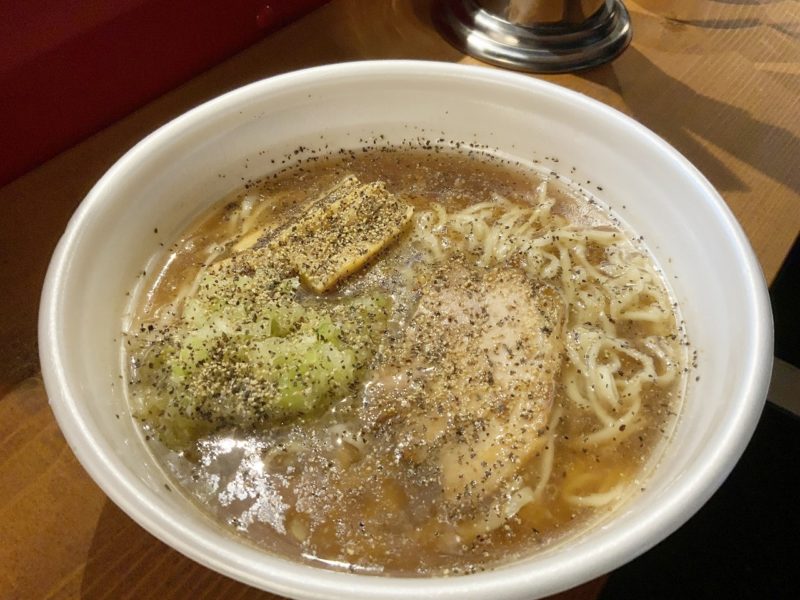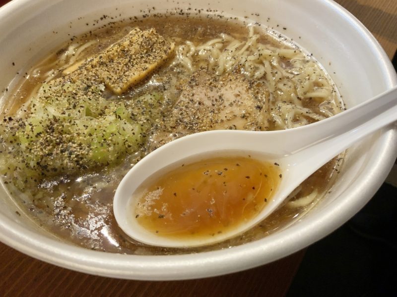 スープは透き通っていますが、脂とブラックペッパーでガツンと来ます。