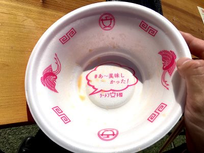 食べたあとの器の底もユニークですね!器のピンク感もラーメン女子博の統一デザインだそうです。