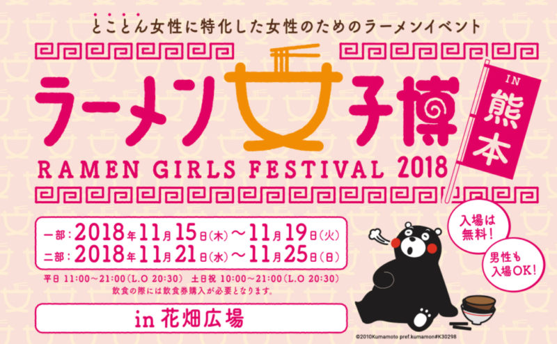 女性のためのラーメンイベント!「ラーメン女子博in熊本2018」が花畑広場で11月15〜25日開催!