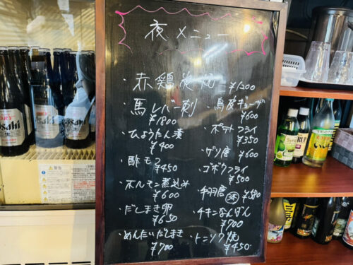 以前は焼き鳥屋さんをしていた店主。赤鶏炭焼をはじめとした夜メニューも充実していておいしそうですね。