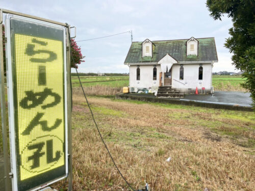広大な田んぼの中にポツンと佇む「らーめんまる孔」。