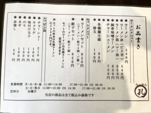 「ラーメン」と「ラーメン赤(ピリ辛)」が特に人気なんだそう!どちらも単品で540円(税込)というお手頃な価格。大盛に変更したとしても630円(税込)。