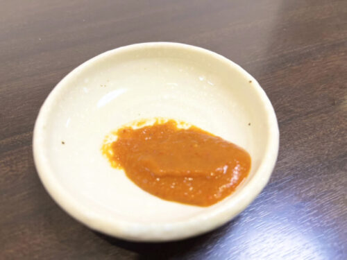 ピリ辛の「ラーメン赤」の素を特別にもらっちゃいました。「ラーメン赤(ピリ辛)」を注文した場合、こちらの調味料がついてくるそうです。