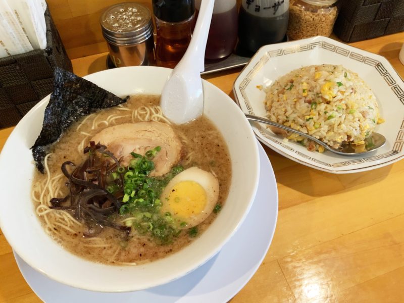 濃厚な豚骨スープとほろほろのチャーシューがたまらない「らーめん白川」。味はもちろんのこと、チャーハンセットでボリュームも満足!