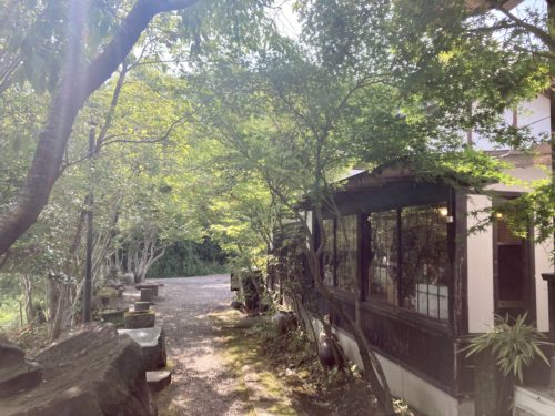 自然豊かで、落ち着く雰囲気。鮮やかな緑の木々がとても美しい。店内へ入っていきましょう。