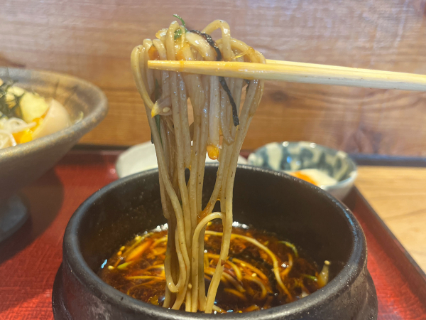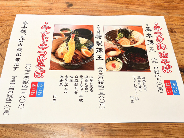 こだわりのラー油ダレが使われた辛つけ蕎麦が人気の「熊本辣王」。
