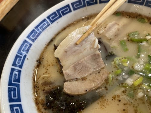 スープをひとくち…あ、とんこつスープならではのパンチ力はあるものの、後を引かないライトな後口。