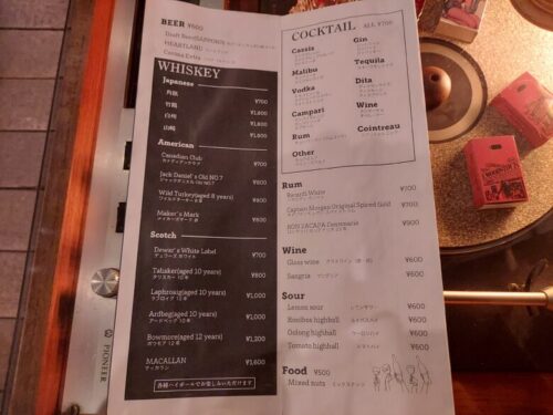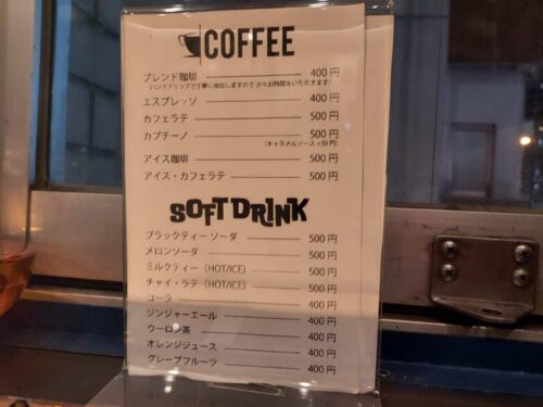 ウイスキーやワインといったアルコール類からコーヒーやソフトドリンクまで、幅広い飲み物が並んでいます。