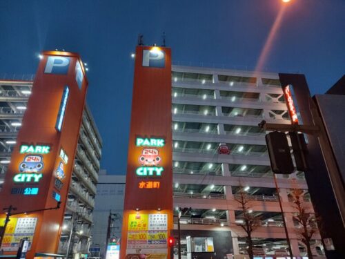 目の前にはパークシティ24h水道町という大きな駐車場があるので、目印としても分かりやすく、お車でお越しの際も停めやすいです。