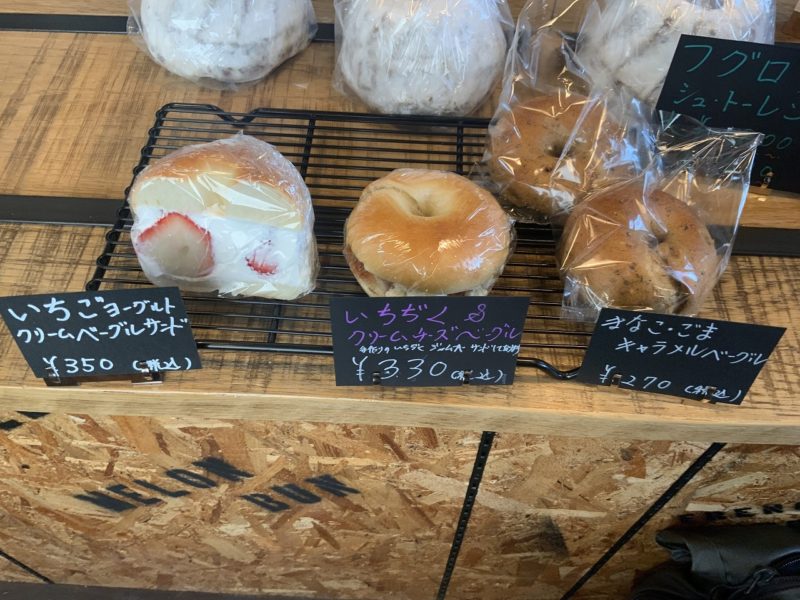特に推しているのは自家製のベーグルだそう。今はいちごヨーグルトやいちじくクリームチーズなどなど季節感のあるベーグルも。うまそう。
