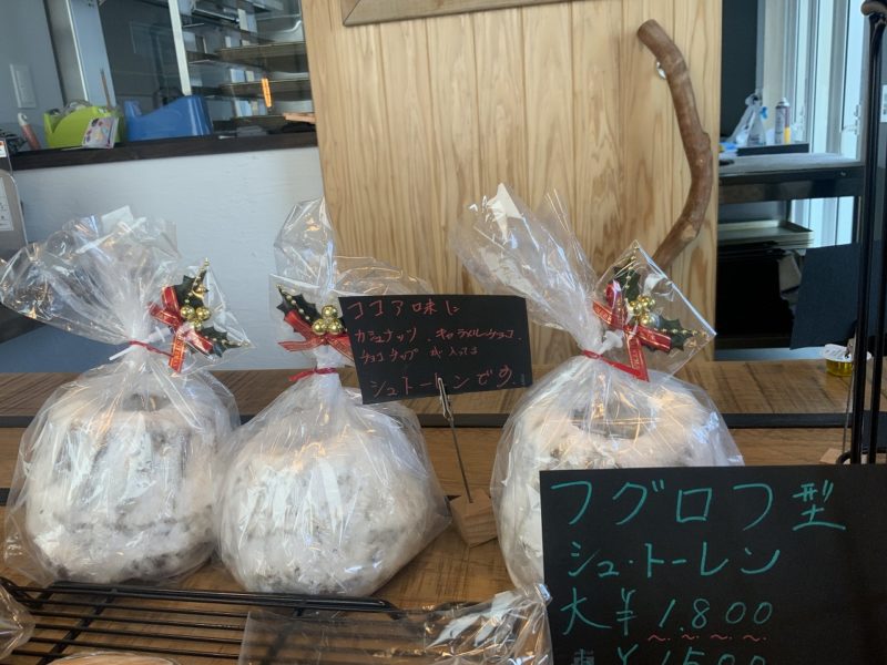 クリスマス前に、ケーキが待ちきれない子どもたちが少しずつ切り分けながら味の変化を楽しみつつ食べるものですが、パン屋さんにあるのは嬉しい!