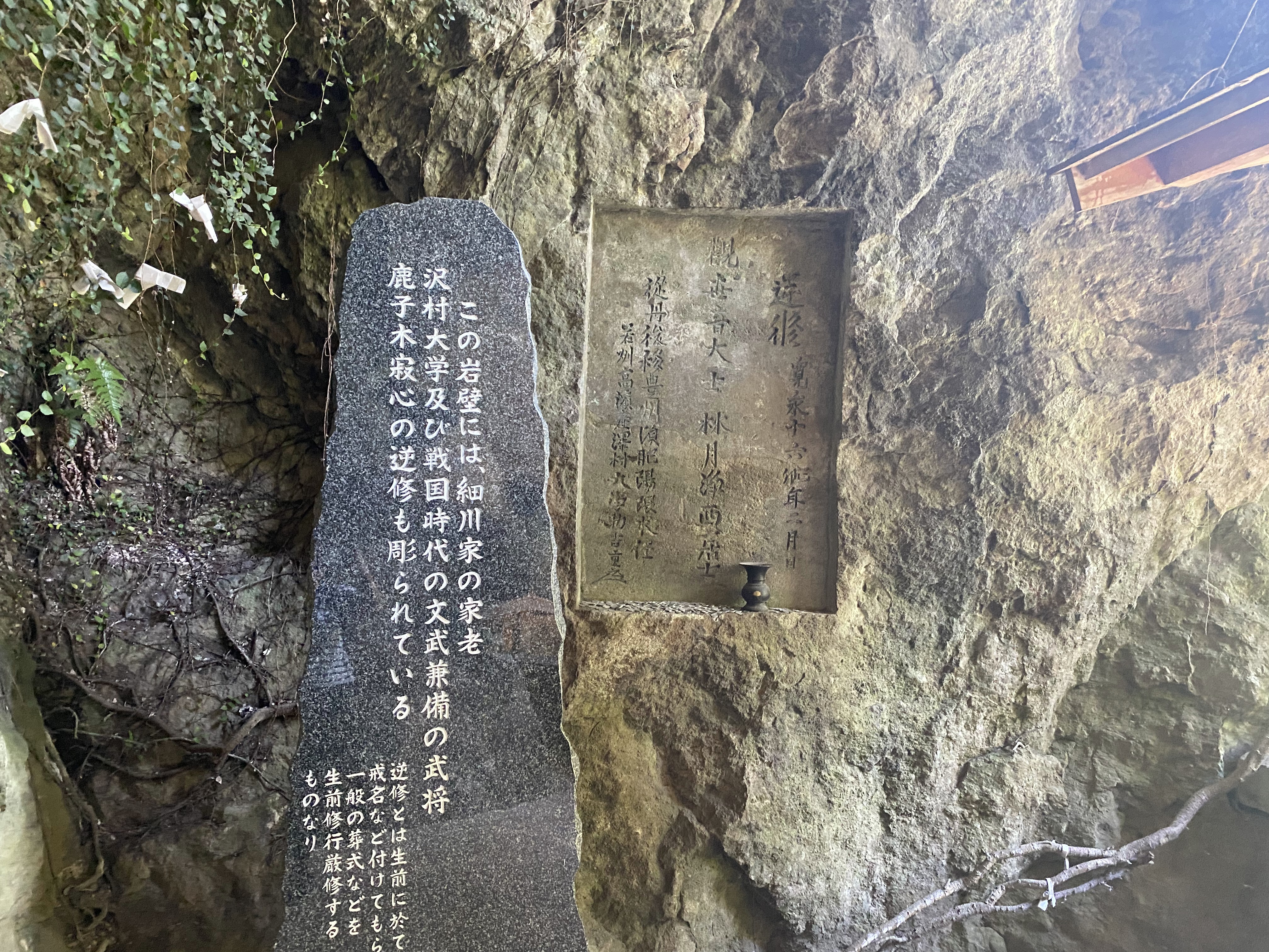 巨石についてはよく分かりませんでしたが、細川家の家老であった沢村大学および鹿子木寂心の逆修が彫られてありました。