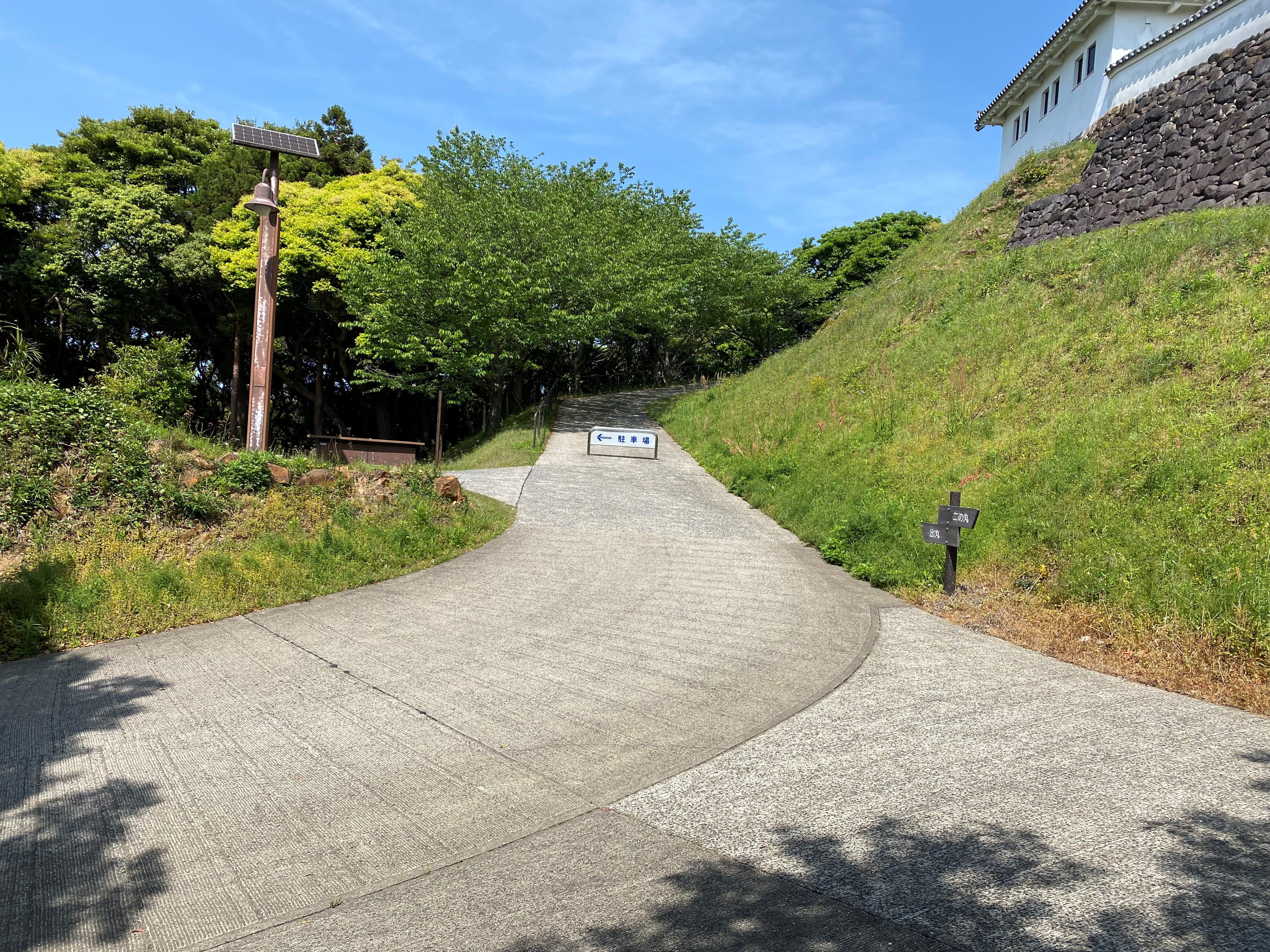 今まで急こう配だなと思って歩いていた道は歩道ではなく車道だったようです。足腰に不安がある方は上の駐車場をおすすめします。