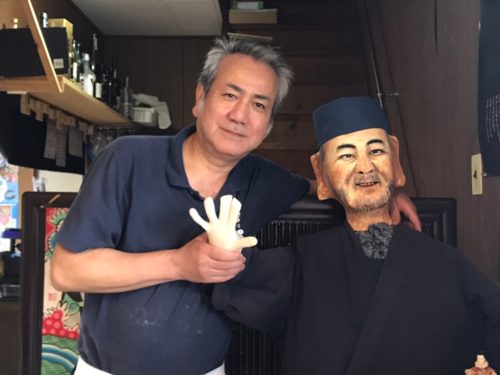 小国の名店「戸無のそば屋」で修行されたという大将(お客様作の、ご本人そっくりのかかしとツーショット)が打つ蕎麦と、天草ならではの新鮮なうにとのコラボメニュー、食べない手はありません!