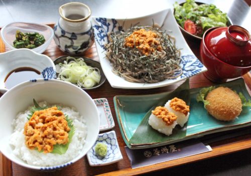 うに丼にうに蕎麦、うに寿司などがセットになった、天草ウニ御膳!