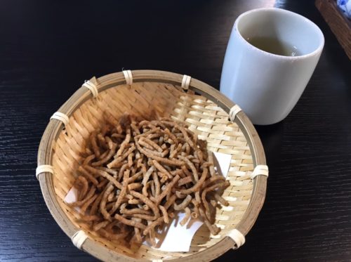 料理が来る前に、そば茶と揚げ蕎麦が楽しめるのも、ありがたい気配り…