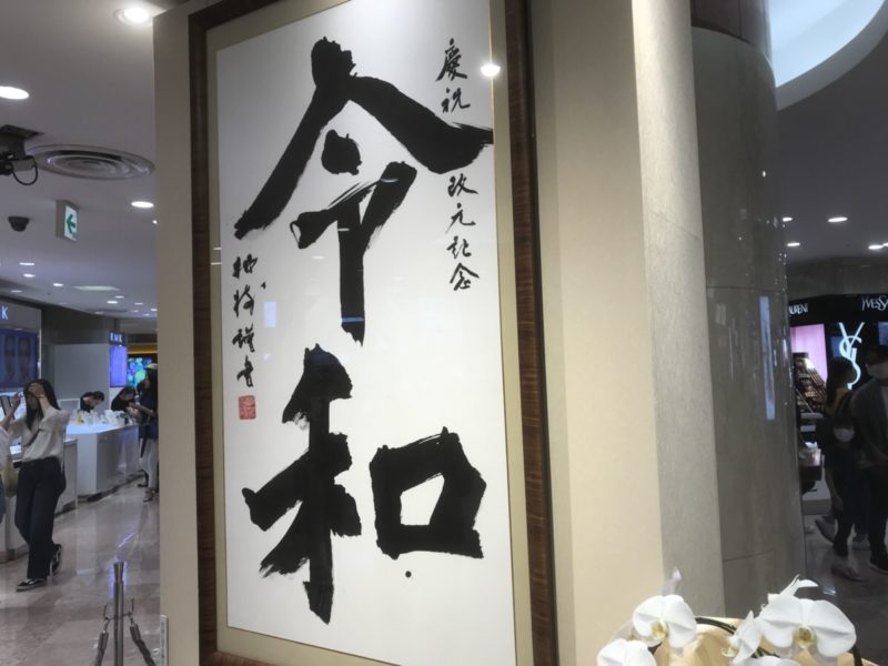 鶴屋百貨店に入ると、早速発見しました!力強く書き上げられた令和の文字!