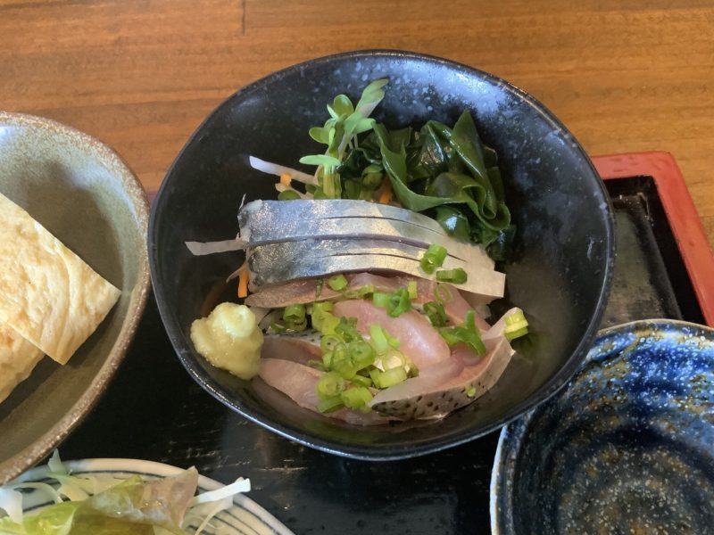 お刺身は、しめ鯖とこのしろ。600円の定食で刺し身が2種類ついてるって、これだけで喜び。