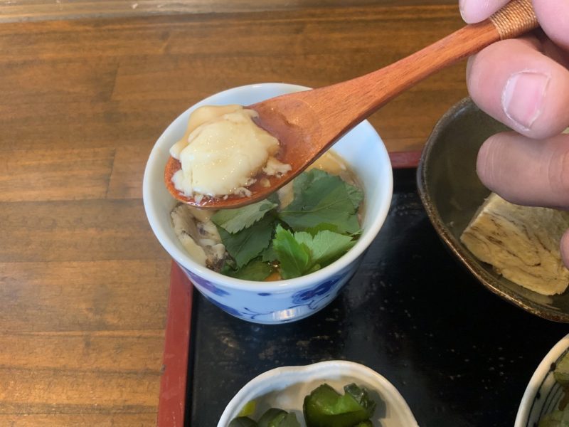 テンションバク上がりしたのが、茶碗蒸し。鶏肉やしいたけをはじめ具材もたっぷりで、上にはとろっとあんがかかっています。