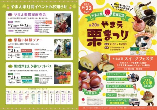 第20回目となる山江村のやまえ栗祭り。村内外のスイーツ店15店がやまえ栗を使用したスイーツを販売します。