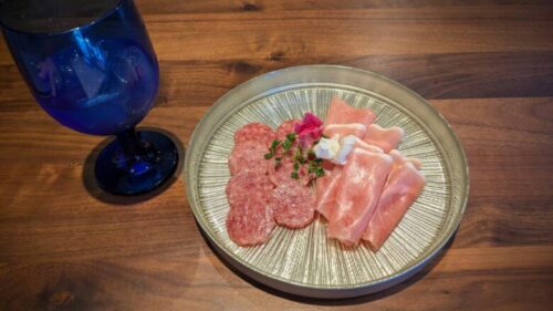 さらに、おつまみメニューから「生ハムとサラミの盛り合わせ」もいただきました。