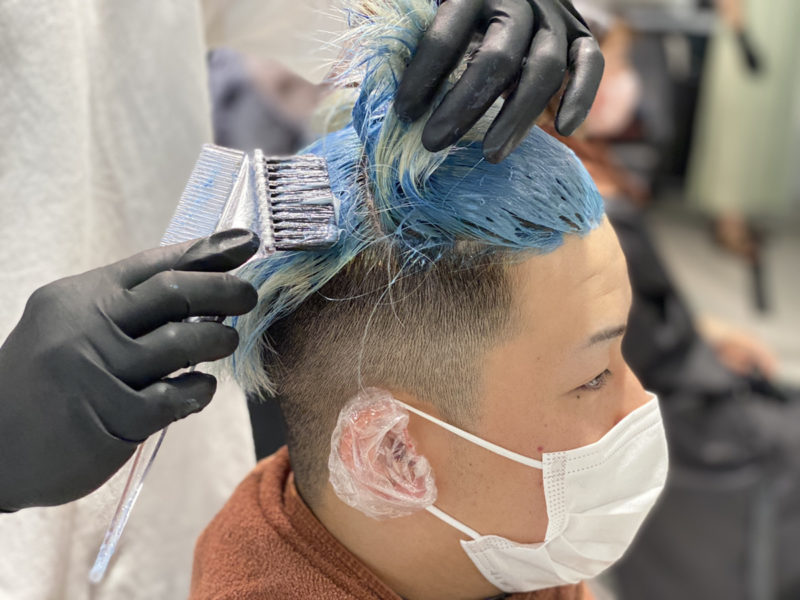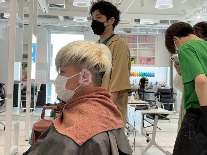 いざ染色!若手美容師の実力やいかに?