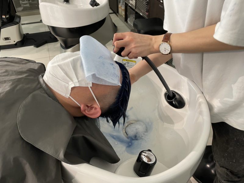 そんなこんなしているうちに染め終わったので洗い流してもらいます。