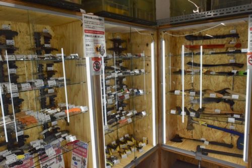 大量の電動ガン、ハンドガン、サバイバルナイフまで、すべて箱から出されて実物展示されています! 幼い頃少年漫画の影響かモデルガンを買うことが夢だった私は、店員さんそっちのけで何周も店内を見て回ってしまいました。本当何時間でも見てられる。