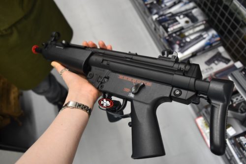 こちらはなんと、10歳のお子さんでも扱うことができるモデル。実際持たせてもらえましたが、案外軽かったです。親子でサバゲーを楽しむ方にはおすすめなんだそう。実物を見せられると欲しくなっちゃうのは私だけでは無いはず。