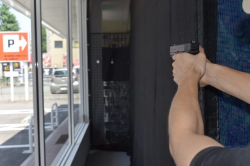 店内の数点の銃は、射撃場があるので、有料で試射できます。射撃場は、自分の銃を持ち込みでも利用できるとのこと。試し撃ちの前には、注意事項の説明があります。