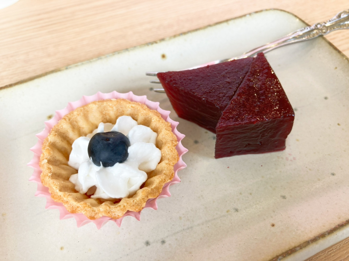ブルーベリーは、とてもみずみずしく酸味が少ないもの。ゼリーはさっぱりしているのでお腹いっぱいでも食べられる気がします。