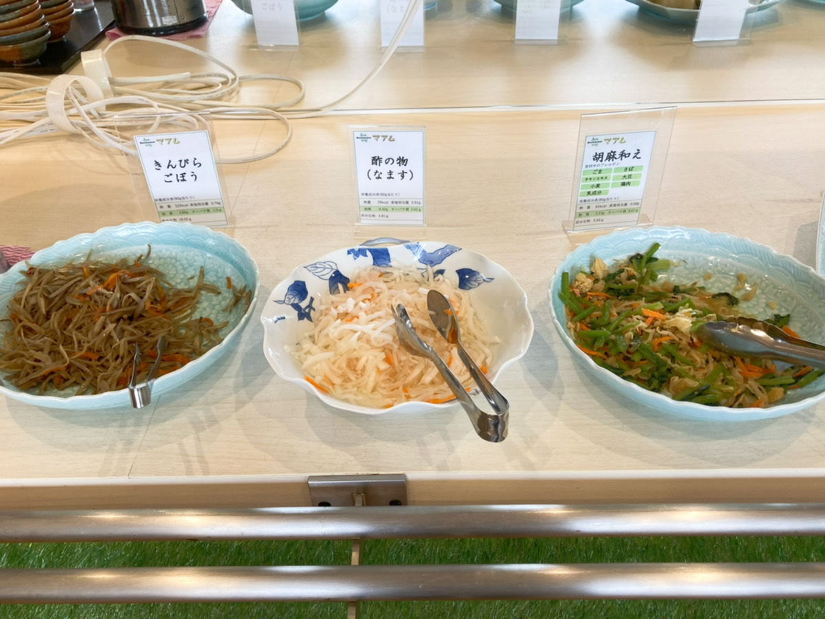 優しいお料理が並んでいると思っていると、ピザや唐揚げ、天ぷらなどの揚げ物もガッツリしたメニューもありました。子供も男性も満足できそう。