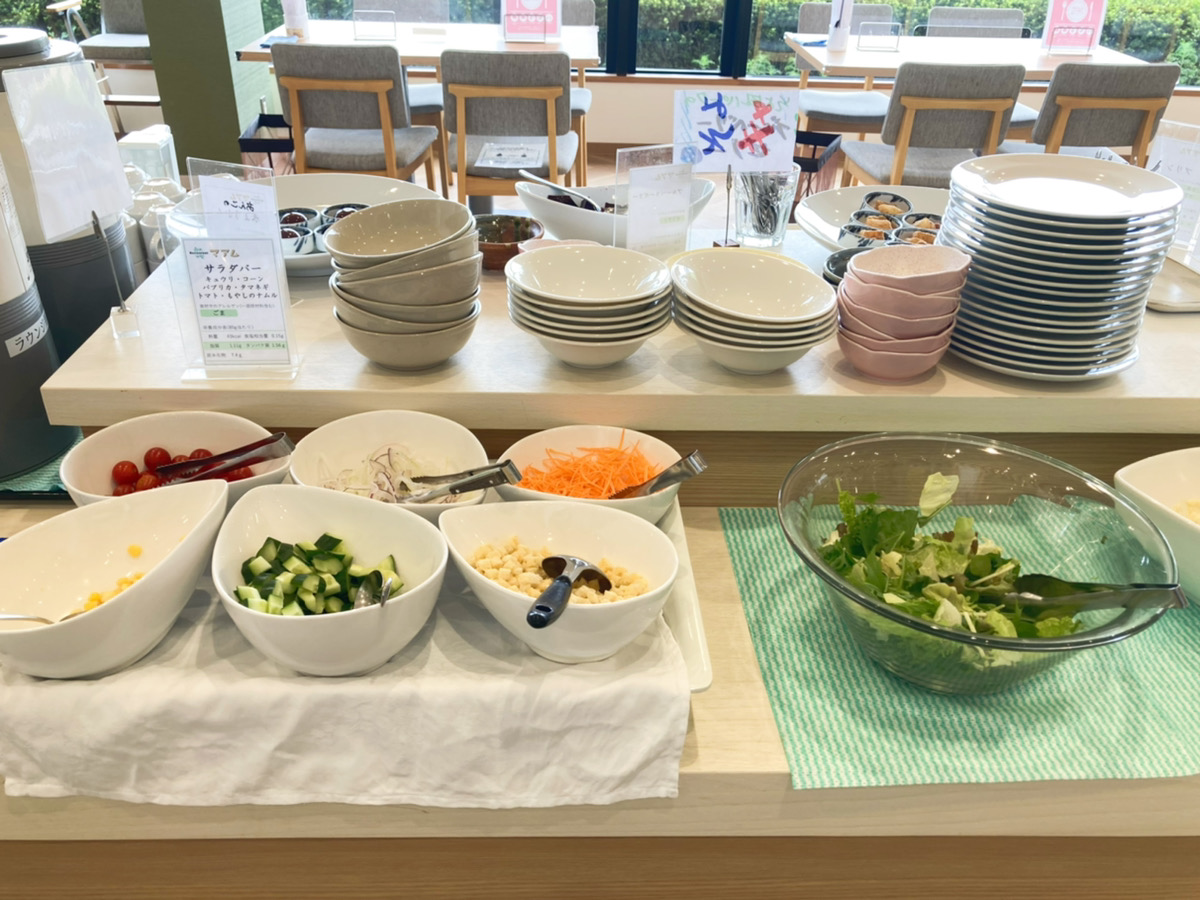 サラダバーもあるので、野菜もたっぷりとれます。ありがたい。