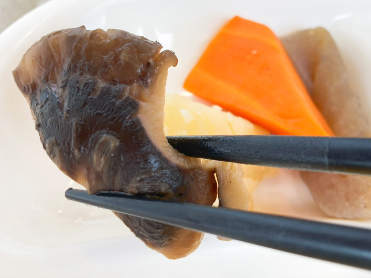 まずは1番人気の煮しめ。味がしっかり染み渡っている煮しめは、食べるとほっとします。いくらでも食べられそうです。