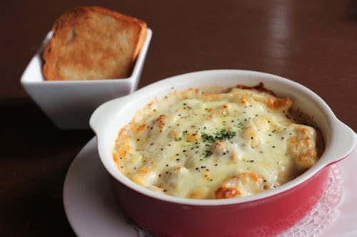 グラタンのソースは濃厚なミルクやチーズがコクをプラスし、飽きない美味しさ。