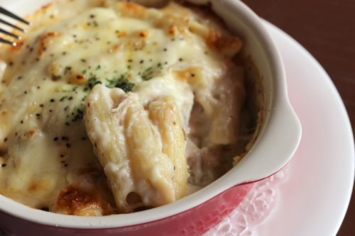 たっぷりのチーズの層をめくるとペンネがゴロゴロ入っていて、食べ応えがあります。