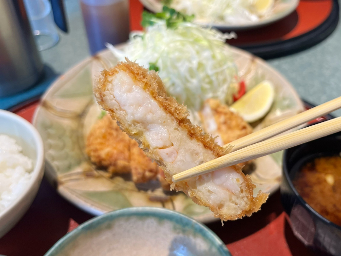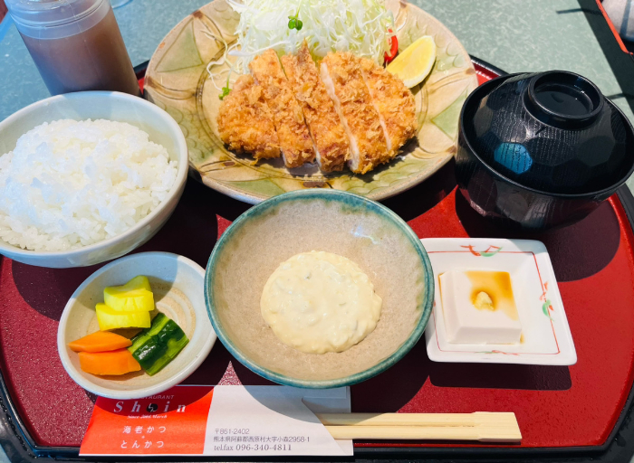 阿蘇郡西原村「海老かつとんかつ レストランしん」は、たっぷり海老が使われている海老かつが名物のお店。