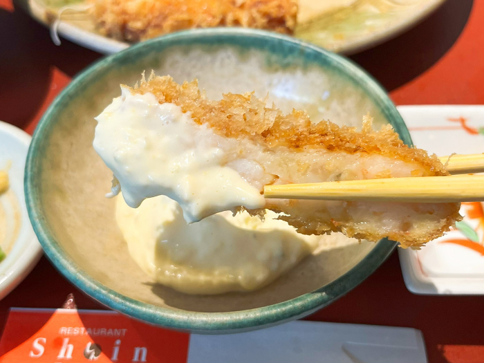 次は、定食に付いているタルタルソース!まろやかなタルタルソースと海老と衣。うん、間違いありません。