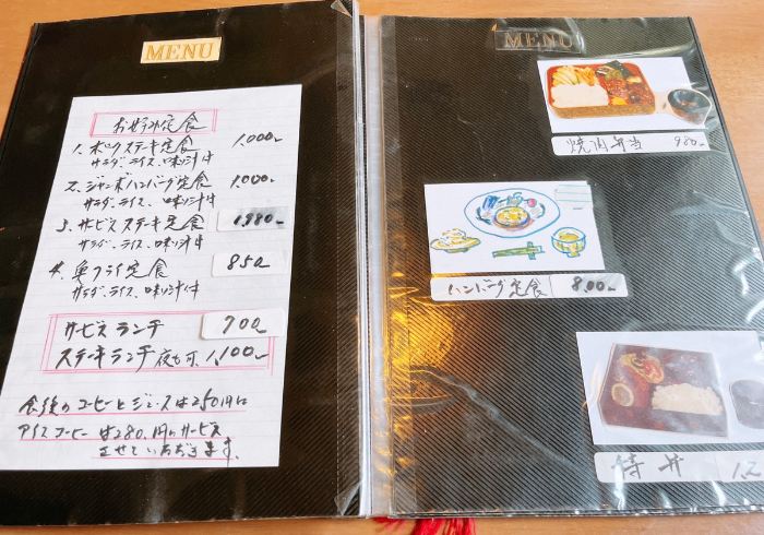 お店のメニューはこちら。手書きが温かみを感じますね。