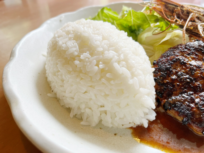 お箸で簡単に切れるほど柔らかいハンバーグ。お肉自体にもしっかり味がついています。