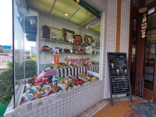 入口にはショーケースに食品サンプルが並べてあります。