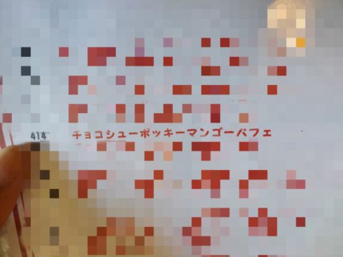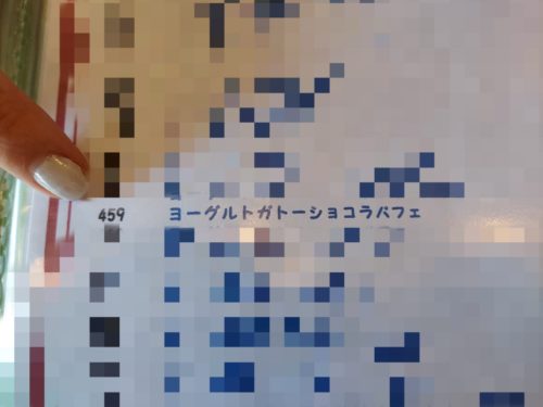 (メニューが撮影禁止のため、注文するパフェ以外のメニューはモザイク加工しております。今回は特別に許可を頂いて撮影しておりますので、メニューの撮影はご遠慮ください。)