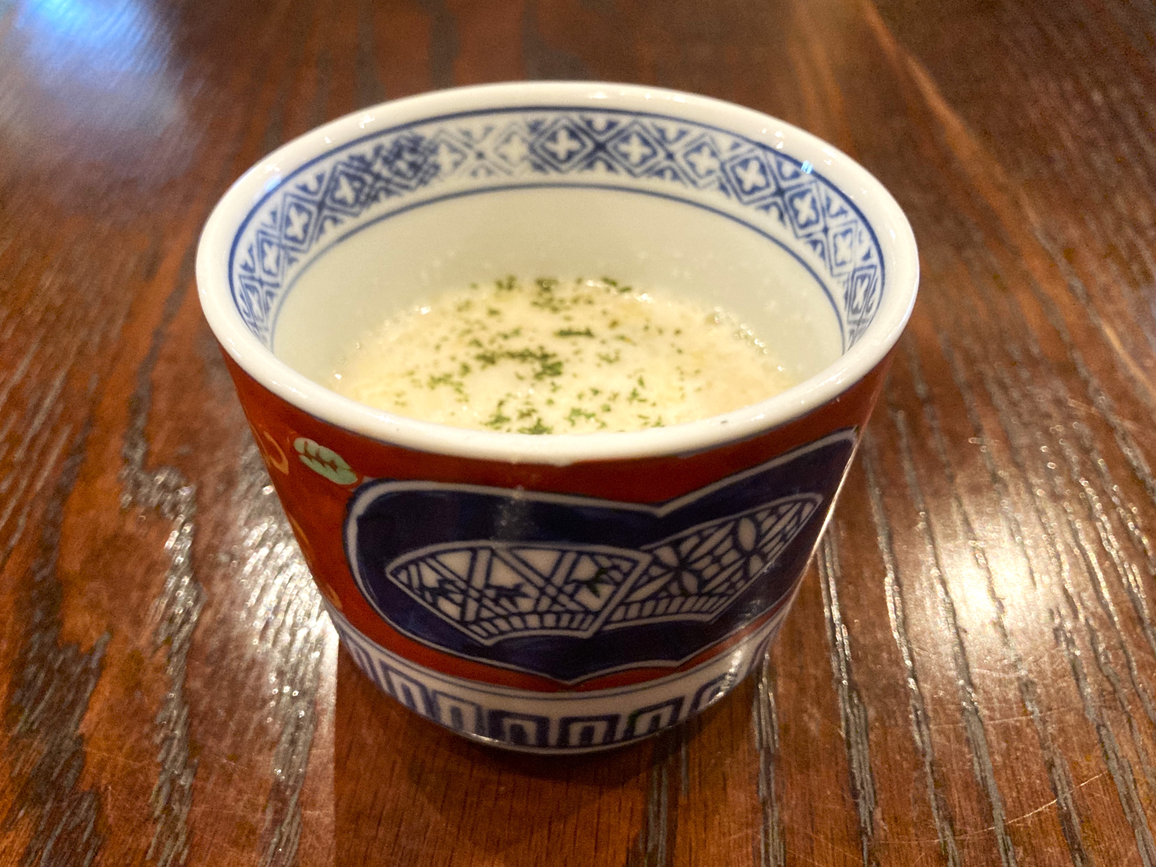 クリーミーでほのかな塩胡椒が美味しい。溶けるくらい煮込まれた玉ねぎがとても甘く、ベーコンがコクをプラスしています。優しくて上品な味です。