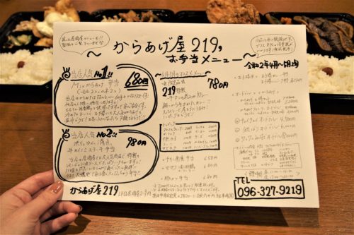 人気のあった”からあげ”や”手羽先”を自宅でも味わいたいという常連さんの要望に応えて、今年の3月からテイクアウト専門の「からあげ屋219」としてランチタイムにもOPENする事に!